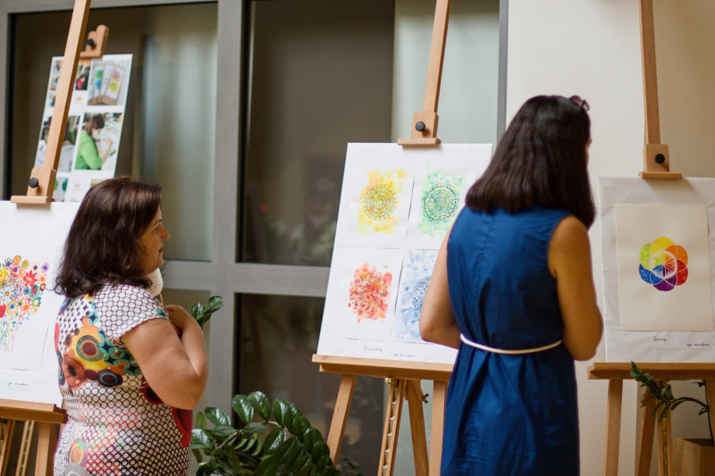 Výstava odráží výběr vzniklých děl. Některá díla jsou jednodušší ze začátku kurzu , jiná jsou již složitější a odrážejí kombinovanou techniku akvarelu tzv. mixed media, kdy se používá více druhů kreativních potřeb (akvarelový obrázek dotvořený fixou, pastelkou apod.).Obrázky jsou velmi pozitivní a určitě Vás osloví.