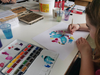 Alenka se učí malovat akvarelem, jde jí to báječně. Z výsledků,které budeme průběžně ukazovat vyrobíme nějaké originální produkty - třeba přání, nebo nějaký diář. Můžete malovat s námi, budeme rádi za Vaše příspěvky nápady. Napoprvé jsme malovali zimní vločky a na zkoušku něco abstraktního. Co jsme použili? Bílou voskovku, akvarelový papír, akvarelové barvy a vodu, trpělivost při usychání. V rámci projektu také chodí Martin uklízet do firem, jde mu to také báječně. Sledujte pravidelně náš FC, kde najdete aktuální fotoreportáže.